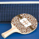 Kall djurbrunt, solbränna, och kräm- pong för leopardtryckpingen paddlar med trycket på båda sidor, beklär har en brun rand med en vit som kantas med det bruna banret som du kan personifiera med din känd monogram som är initial och!