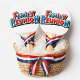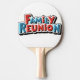 En ljus, lekfull pingisracket med fet stil röd-vit-blå ”Family Reunion”-text — perfekt för spel, presenter och minnessaker från evenemang.