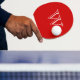 Pingpong paddlar visat i rött med ett monogrambrev. Skräddarsy detta objekt och ändrar brev till vad du behöver eller köp, som är.