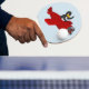 Ping Pong/addle med formgivning med illustration av en penguin som flyger från ett rött flygplan, illustrerad av Radka Kavalcova / MaxiHarmony
