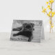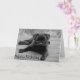 Skicka lite Pug kärlek till vänner och familj. Det här Cute Grattis på födelsedagen-kortet har ett svart och vitt foto av en söt pug-valp-hund som vilar på en träfläck.