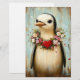 🖤 Föreställer en fantasifull pingvin prydd med en hjärtvärmande blomsterkrans, accentuerad med ett djärvt rött hjärta i mitten. Den pastellfärgade bakgrunden, som liknar väderbitet trä i mjuka blå nyanser, förstärker den drömlika och rustika känslan i konstverket. Flytande hjärtan i rosa och röda nyanser tillför en extra touch av lekfull romantik. Designen smälter vackert samman cottagecore och fantasifullhet, med fokus på naturliga element och mjuk berättelsekonst. Renderad i en stil som påminner om oljemålning, ger de texturerade penseldragen och den mjuka färgpaletten den en delikat och inbjudande framtoning.......….OBS 1. Detta papper är tjockare än vävnadspappersversionen av denna design, men det finns tillgängligt i enstaka ark och mindre storlekar. Medan papperet fortfarande fungerar för decoupage, är det också perfekt för att göra kort, scrapbooking, mixed media-projekt och mer. Observera att det finns två typer av