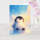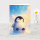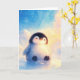 En fluffig pingvinbaby sitter lyckligt i ett snöigt landskap, badad i det varma skenet från en gyllene soluppgång. Dess lilla svarta fenor vilar försiktigt på den mjuka snön, och dess runda ögon stirrar uppåt med ett fridfullt och tillfredsställt uttryck. Snöflingor driver genom den krispiga arktiska luften och skapar en drömlik vintervärld. Bakgrunden har mjuka, lysande moln som smälter samman med en strålande blå himmel, vilket ger hela scenen en magisk, lugn stämning. Denna bedårande pingvinillustration fångar ett hjärtvärmande ögonblick, perfekt för alla som älskar vinter, natur och söta djurdesigner.