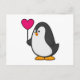 Pingvin med hjärtballong vykort