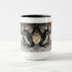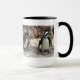 Denna mugg presenterar förtjusande afrikanska pingvin som står på en stenig avsats. De är vatten- flightless fåglar vars vingar har blivna flipper. Varje har en svart rand och svart fläckar på bröstkorgen. Mönster av fläckar är unikt för varje pingvin, den precis lika människan identifierar med fingeravtryck. De har rosa körtlar ovanför deras ögon och rosa och svart fot.