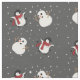 Pingvin med den röda scarfen med morot-näsa snögubben på en snöig vinternatt.