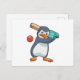 Pingvin på Cricket med Cricket slagträ Vykort
