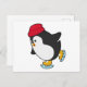 Pingvin på skridsko med mössa vykort