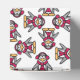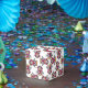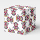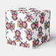 Grafisk teckning av pingviner insvepta med en halsduk och örhängen på julklappslåda. Design av Sarah Trett.