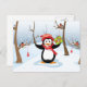 Pingvinet med dentäckte julgåvavintern landskap med beställnings- helgdaggåvor för träd och för domherrefåglar.