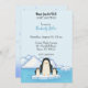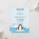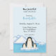 inbjudan med pingvinfamiljebild på blå bakgrund