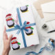 Pingvin med den Santa hatten och scarfen på jul som slår in papper