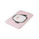 Den gulliga rosa-varade fräck mot pingvinet på rosor och en vit görade randig bakgrund.