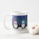 Ta ett kaffeavbrott med några pingvinvänner när som helst! Grafisk illustration av pingvinvänner som delar någon varm kakao på en kall vinterdag.