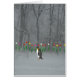 Den förtjusande pingvinet som tar en gå i den snöig skogen, undrar, om det är nästan våren! Wintry landskap fyllt med snö och träd som prickas med tulpan för att hålla pingvinföretaget.