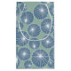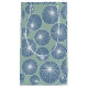 Denna presentväska har en modern design av dammiga blå cirklar i mitten av århundradet, med vita stjärnor inuti en fält i grönten av skaldjur.