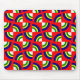 Den här musknappen har en Bauhaus-design med kvartskretsar i blått, gult, grönt och vitt på en fält av rött.