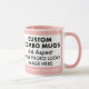 PINK 4:6 landscape aspect ratio double image frame custom Combo Mug for photo or logo, 11 oz., 3.2" diameter x 3.8" high, with PINK background double image frame (two individually customizable design areas) providing maximum coverage of the mug in PINK, plus personalized text template optimized for the COPPERPLATE BOLD font (when changing the font style - 'Edit this Design' - you may also need to adjust the size and the letter spacing of the text via the settings). See store for more templated font options. The background color has been chosen to closely resemble the combo mug inside and handle color but may not match exactly, due to the difference between printing and enamel tones.