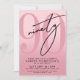 This modern birthday invitation features a soft light-pink-to-dark-pink gradient on the front for a feminine, stylish look. A deep dark-pink “90” spans most of the design, giving it a bold but minimal vibe. The handwritten script word “Ninety” sits in black, adding a sweet modern touch. All party details line up at the bottom in clean black text to keep everything easy to read.