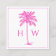 Pink and White Palm Palmetto Tree Monogram Fyrkantigt Visitkort
