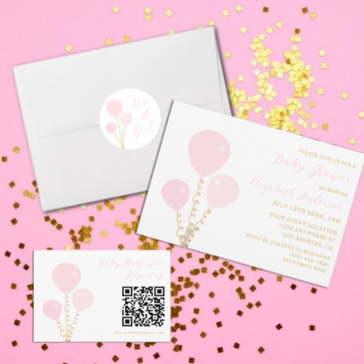 Pink Balloons Girl Baby Shower