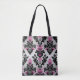 Sophisticated Damask style tote bag in Pink Black, and Silver.