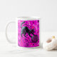 This pink black cat mug features a playful hand-drawn black kitty chasing a ball of yarn on a bold fuchsia background, perfect for cat lovers who enjoy fun, artistic designs. With its vibrant colors and whimsical doodle style, it makes a cute cat lover gift and a cheerful everyday coffee mug for home or office.