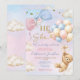 Pink & Blue Balloon He Or She Bear Gender Reveal Inbjudningar