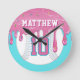 Pink & Blue Baseball Drip Rund Klocka