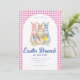 Pink Blue Floral Bunny Watercolor Gingham Easter Inbjudningar