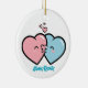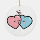 Pink & Blue Hearts Kiss Julgransprydnad Keramik