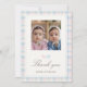 Thank guests with a classic photo thank you card featuring a teddy bear design and pink and blue plaid accents.