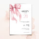 Make your day even more memorable with our 21st birthday invitation featuring a beautiful pink bow design. This elegant and classy invitation is an editable template that you can personalize easily, making it perfect for a 21-year-old girl’s celebration party. With its minimalist style and charming watercolor coquette element, this invitation is not only visually appealing but also practical, allowing you to send a stylish pink ribbon invite with just a few clicks. Choose our printable card to ensure that every detail stands out as you invite friends and family to join in the festivities. Celebrate your journey with a stunning invite.
