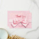 These adorable pink polka dot baby shower thank you cards feature a pretty pink bow and a mix of calligraphy script, serif, and sans serif fonts. The reverse side displays pink and white polka dots along with a thank you message. To customize the card, simply click 'Personalize this Design' and enter your details. Zazzle will handle the rest. This lovely card is part of the Polka Dots, Ribbons, and Bow Baby Shower Invitation Suite.