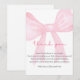 Matching pink bow baby shower thank you card template. Fully editable on Zazzle. Personalize text and fonts. Print at home or professionally.