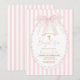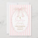 Pink Bow Blush Cross Stripes Baptism Invitation Inbjudningar