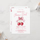 Pink bow cherry girl birthday inbjudningar