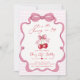 Pink bow cherry ribbon girl birthday Party Inbjudningar