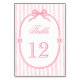 Pink Bow Coquette Table Number. Matching items available.