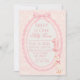 Celebrate your little one's first milestone with this charming and playful "One Silly Goose" first birthday invitation. Designed with a trending coquette pink aesthetic, this sweet invite features a delicate scalloped oval frame, a classic pink ribbon bow, and a subtle vintage damask background.