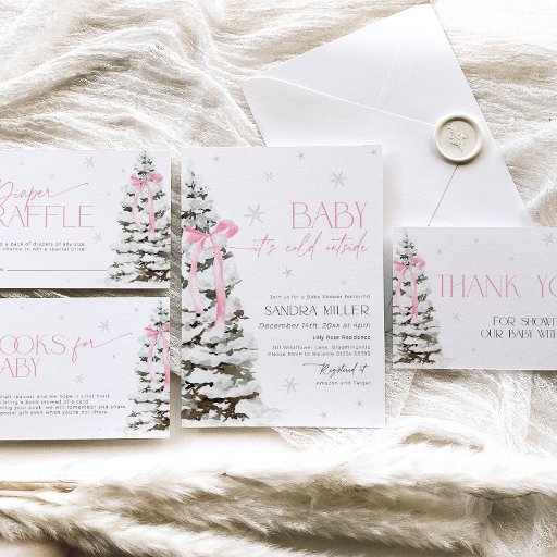 With this Winter Wonderland thank you card you have a beautiful way to say thanks for all the gifts and wishes for the mom-to-be. It is designed for a coquette bow themed Baby Shower.