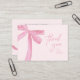 Add a touch of elegance to your client communications with this blush pink coquette bow "thank you for your order" business card. Featuring a chic, coquette, watercolor ribbon design this card is perfect for showing appreciation in style. Personalize and include a custom message, social media handles, website, logo and company name on the back for a polished, professional finish. A thoughtful way to elevate your brand while leaving a lasting impression. Ideal for small businesses, boutiques, salons, and creative entrepreneurs.