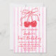 Pink Bow Fruit Sweet Cherry First Birthday Inbjudningar