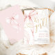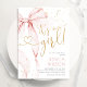 Pink Bow Elegant girl baby shower invitation. Modern minimalist design in blush pink and gold. Features trendy watercolor coquette bow, and heart script font it's a girl! Perfect for an elegant style girl shower celebration. Personalize with your own details. Printed Zazzle invitations or instant download digital printable template.