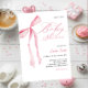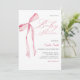 A perfect way to celebrate a girl baby shower with this elegant pink coquette bow theme. Shower the mother-to-be with this pretty and pink ribbon and bow theme baby shower. Invite your girl friends with this baby shower invitation featuring a hand drawn sophisticated blush pink bow accent.
