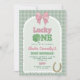 Pink Bow Horseshoe Clover Lucky One Birthday Inbjudningar