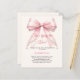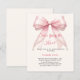 An elegant soft ivory colored background, decorated with a pink colored bow with pearls. Personalize and add a name and party details.