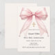 Pink bow ivory pearls girl elegant First Communion Inbjudningar