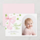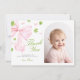 Pink Bow Lucky One Birthday Flat Thank You Card with Shamrocks