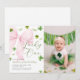 Pink Bow Lucky One Shamrock Clover 1st Birthday Inbjudningar